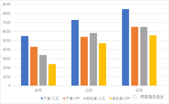 圖4 近三個月中國動力電池三元和LFP電池產(chǎn)量和裝機量
