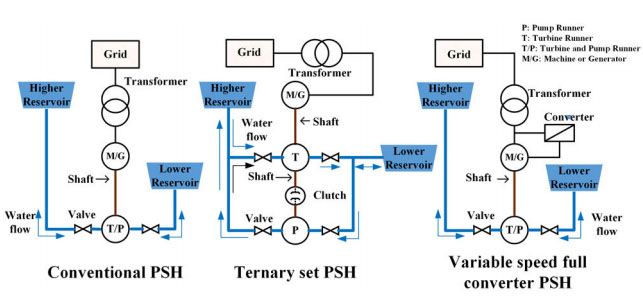 圖1 三種類型抽水蓄能系統(tǒng)結(jié)構(gòu)對(duì)比