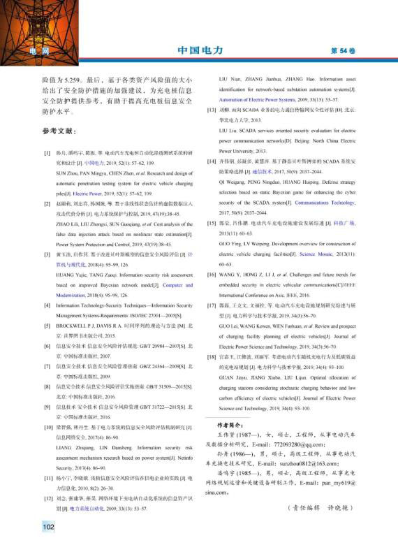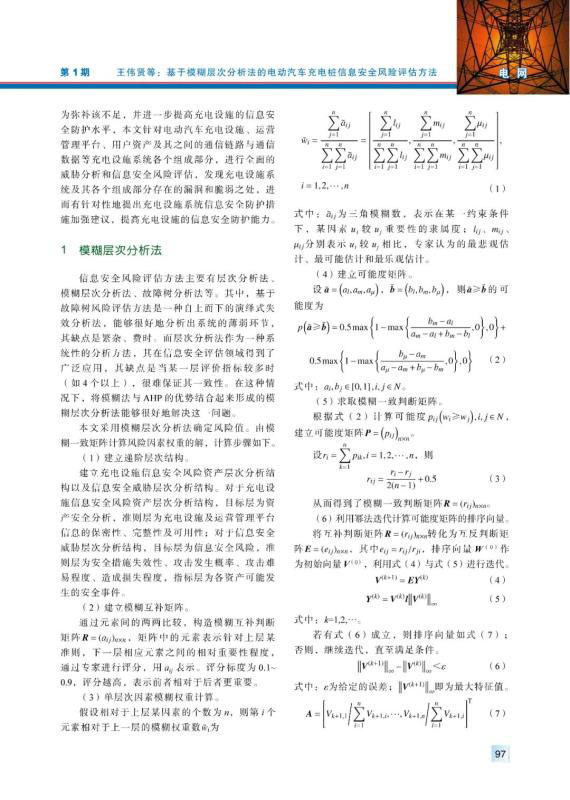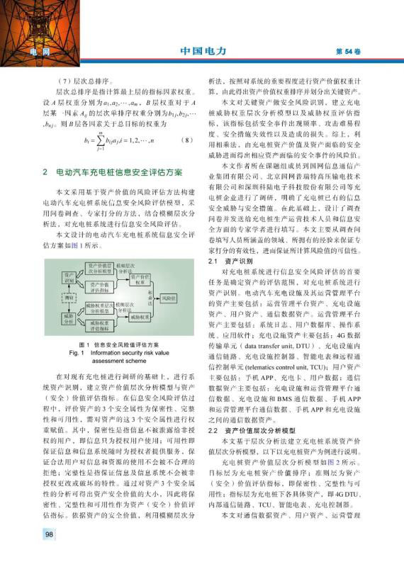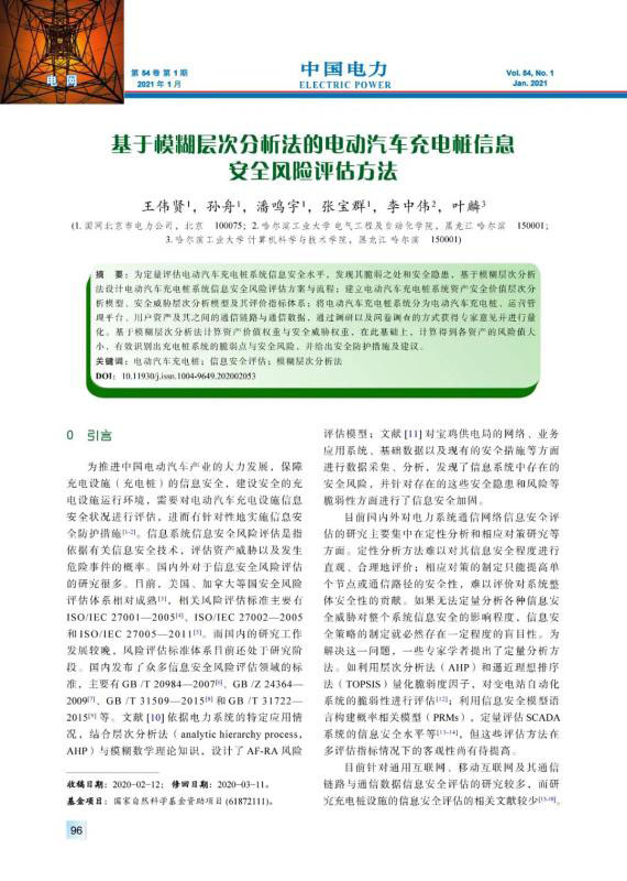 WANG Weixian, SUN Zhou, PAN Mingyu, et al. Information security risk assessment method for electric vehicle charging piles based on fuzzy analytic hierarchy process[J]. Electric Power, 2021, 54(1): 96-103.