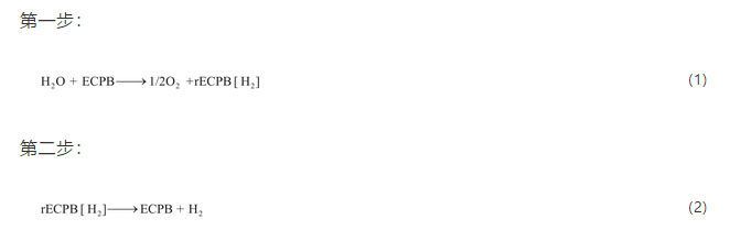 分步法電解水是在電解水體系中增加電子-質(zhì)子緩沖介質(zhì)(ECPBs),將水的裂解分為兩個(gè)步驟,第一步接通陽極和ECPBs,OER發(fā)生時(shí),陽極產(chǎn)生氧氣,釋放的電子由ECPBs存儲,而ECPBs自身被還原。第二步,將還原態(tài)的ECPBs與陰極接通,HER發(fā)生時(shí),陰極產(chǎn)生氫氣,ECPBs釋放電子自身被氧化,見方程(1)、(2)。