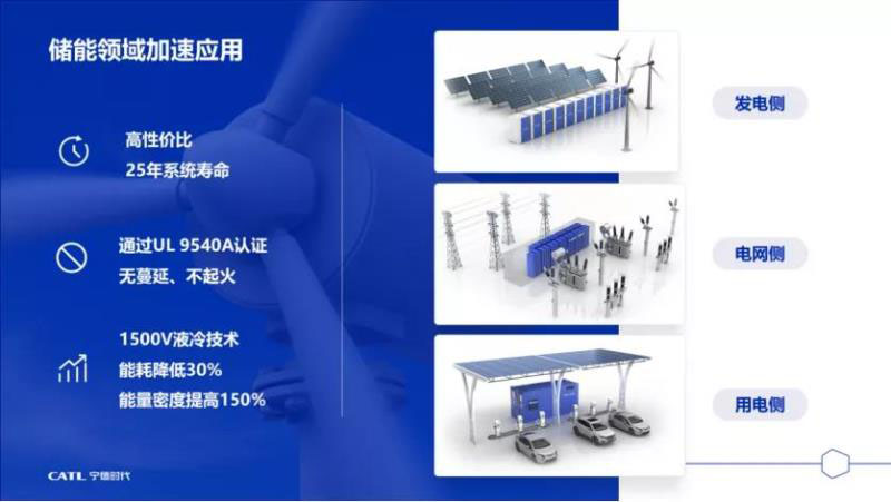 三是,儲(chǔ)能電池突破循環(huán)壽命瓶頸。寧德時(shí)代突破了循環(huán)壽命瓶頸,推出的12000次超長循環(huán)壽命電池可以服役25年,在全球率先通過UL安全測試,實(shí)現(xiàn)系統(tǒng)不蔓延、不起火,并采用1500V和液冷技術(shù),能量密度和能量效率都大大提升。