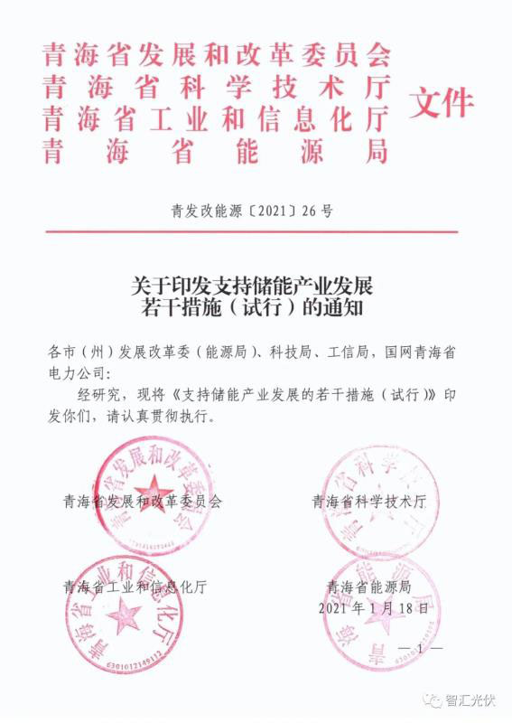 中國儲能網(wǎng)訊:1月18日,青海省發(fā)改委、科技廳、工信廳、能源局聯(lián)合下發(fā)《關(guān)于印發(fā)支持儲能產(chǎn)業(yè)發(fā)展若干措施(試行)的通知》,文件明確:
