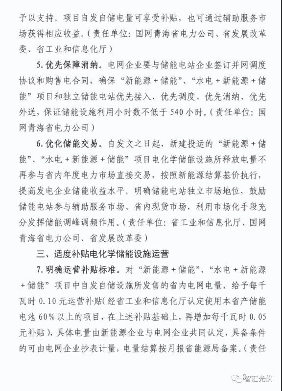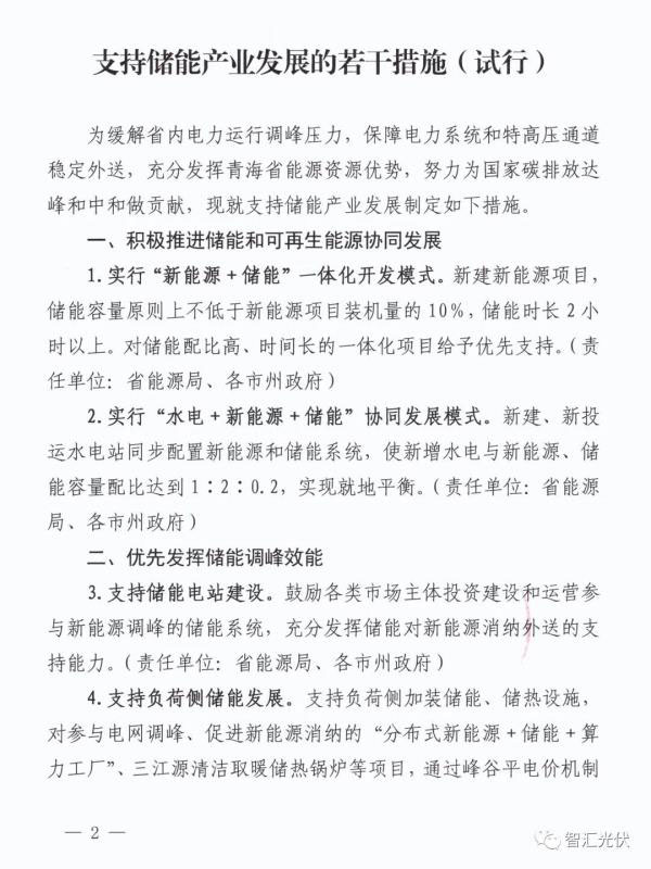 1)將實(shí)行“新能源+儲能”一體化開發(fā)模式。新建新能源項目,儲能容量原則上不低于新能源項目裝機(jī)量的10%,儲能時長2小 時以上。對儲能配比高、時間長的一體化項目給予優(yōu)先支持。