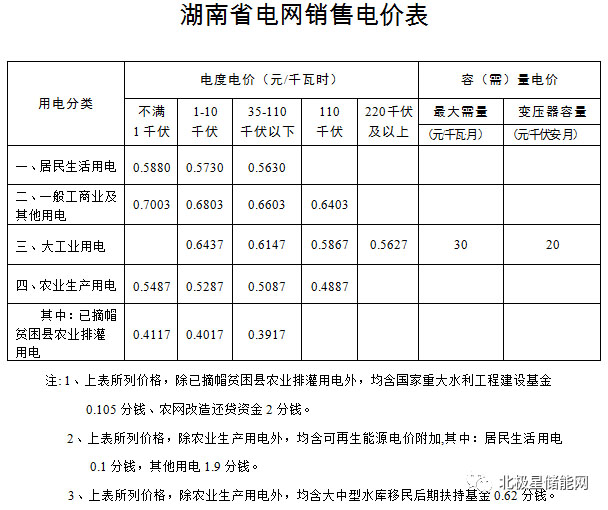 據(jù)北極星儲能網(wǎng)了解,湖南電網(wǎng)目前執(zhí)行的銷售電價如下: