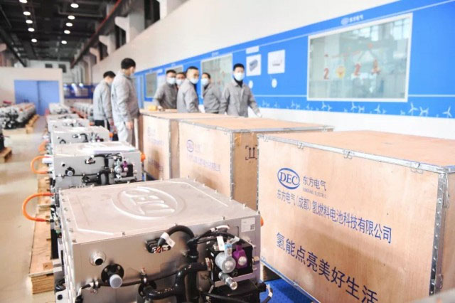 東方電氣于2010年啟動(dòng)了燃料電池研發(fā)工作,經(jīng)過長期扎實(shí)的技術(shù)積累,在2017年自主研制的第一代氫燃料電池發(fā)動(dòng)機(jī)正式裝車,2018年實(shí)現(xiàn)10臺(tái)公交車小批量示范,2019年第二代發(fā)動(dòng)機(jī)實(shí)現(xiàn)批量應(yīng)用,點(diǎn)亮了四川省、成都市氫能產(chǎn)業(yè)發(fā)展的星星之火。當(dāng)前,先期示范的100臺(tái)氫燃料電池公交車?yán)塾?jì)運(yùn)營里程超過620萬公里,最低氫耗不到4公斤,處于國內(nèi)領(lǐng)先水平。