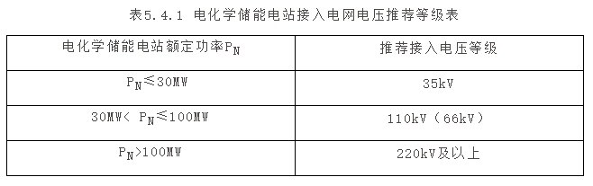 5.4.1 電化學儲能電站接入電網(wǎng)的電壓等級應按照安全性、靈活性、經濟性的原則,根據(jù)電化學儲能電站容量、上級變壓器及線路可接納能力、接入電網(wǎng)條件等因素,經過綜合比選后確定,不同額定功率儲能電站接入電網(wǎng)的電壓等級宜按表5.4.1確定。