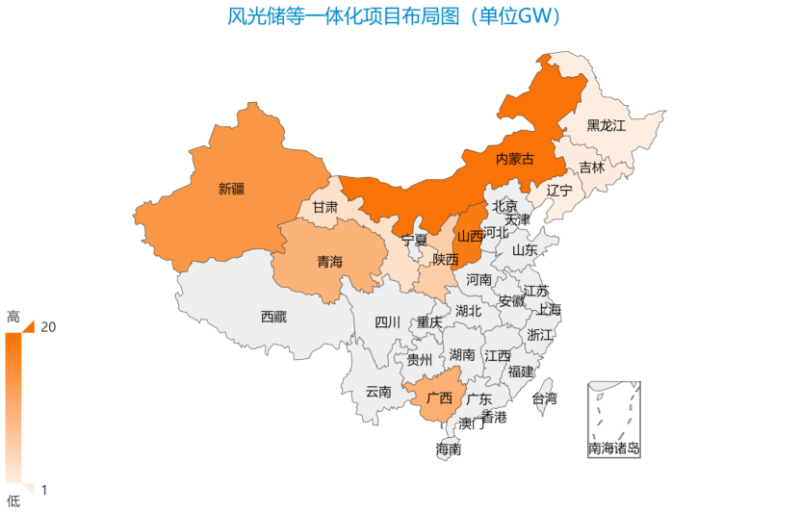 在一體化項(xiàng)目的規(guī)劃投建中,電力央/國(guó)企成為投資的中堅(jiān)力量。其中,中國(guó)能建在新疆、內(nèi)蒙古、甘肅、廣西等地先后簽署超過(guò)25GW的一體化項(xiàng)目規(guī)劃,投資千億元。中國(guó)能建表示,將加大綜合能源、新能源、儲(chǔ)能、氫能等新業(yè)務(wù)發(fā)展力度,積極探索“風(fēng)光水火儲(chǔ)一體化”“源網(wǎng)荷儲(chǔ)一體化”的實(shí)施路徑。