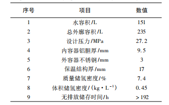 表4 我國首臺液氫氣瓶試驗原理樣機參數(shù)