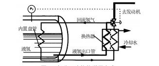由于液氫存儲于低溫液體狀態(tài),需要經(jīng)過相變、溫度調(diào)整、壓力調(diào)整等步驟,氫氣才能供動力裝置使用,因而對各參數(shù)的實現(xiàn)較其他儲氫方式要復雜一些。供氣壓力的控制是液氫儲存系統(tǒng)的核心技術之一,在液氫系統(tǒng)的發(fā)展歷程中,形成了多種系統(tǒng)增壓方式。