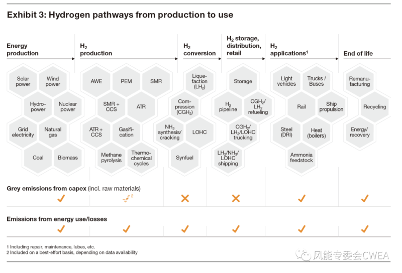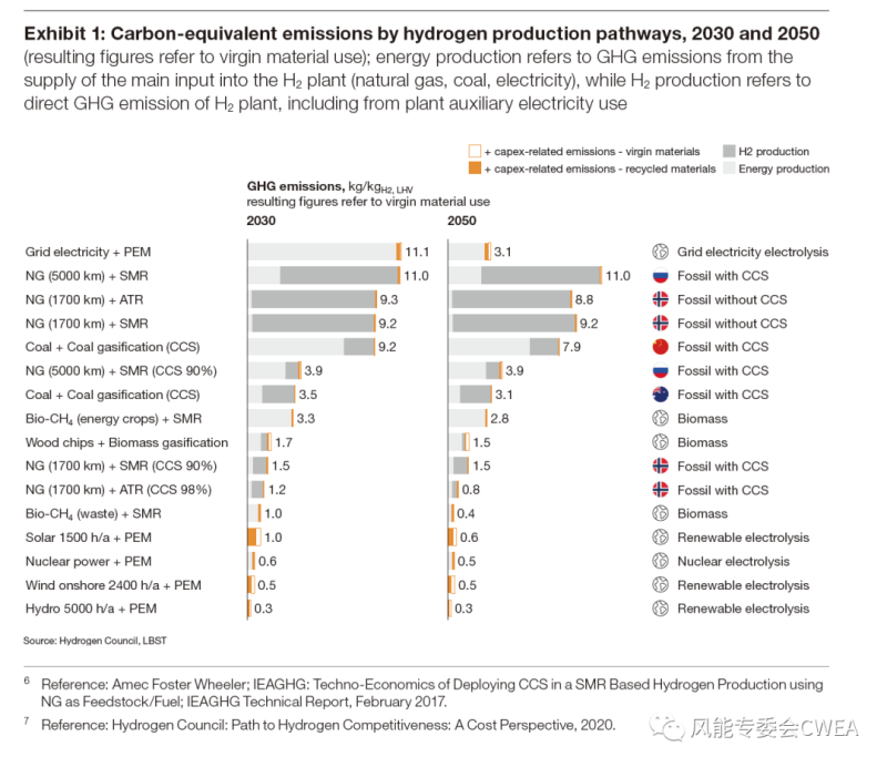 例如,通過(guò)可再生能源通過(guò)水電解產(chǎn)生的“綠氫”可達(dá)到最低排放,但由具有高二氧化碳排放的天然氣生產(chǎn)“藍(lán)氫”如果能使用最佳技術(shù)并遵循最佳實(shí)踐,則通過(guò)捕獲和存儲(chǔ)技術(shù),同樣可以實(shí)現(xiàn)低排放。