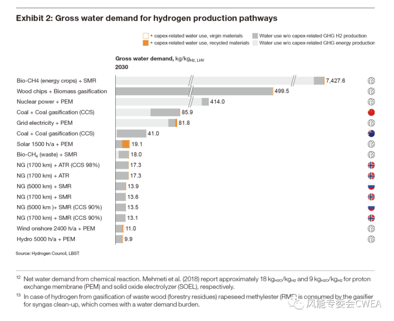 氫生產(chǎn)過(guò)程各中方法的用水量比較