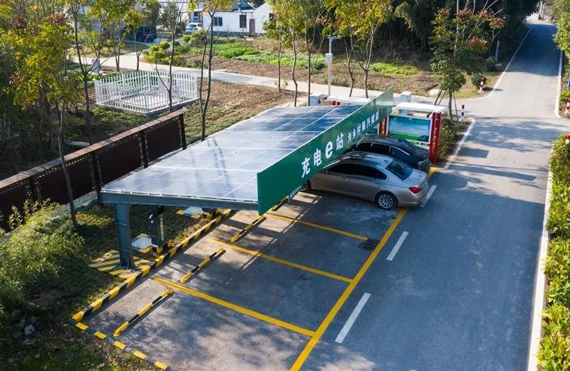 圖為橫港村桃源漁歌風景線景區(qū)內的新能源汽車充電站。李超/攝。