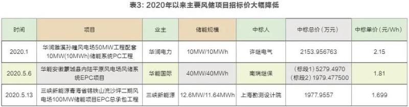 2020年初以來,新能源配儲能項(xiàng)目開標(biāo)價(jià)格逐漸走低,從年初的2.65元/Wh下降至1.65元/Wh左右。與此同時(shí),無視項(xiàng)目成本一味低價(jià)競標(biāo)的現(xiàn)象在儲能招投標(biāo)中愈演愈烈。5月中旬,三峽新能源青海風(fēng)儲項(xiàng)目開標(biāo),1.699元/Wh的EPC價(jià)格刷新了行業(yè)底線。業(yè)界普遍認(rèn)為,該價(jià)格已經(jīng)低于儲能成本價(jià)。