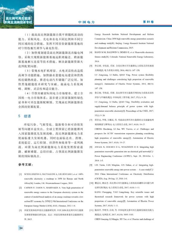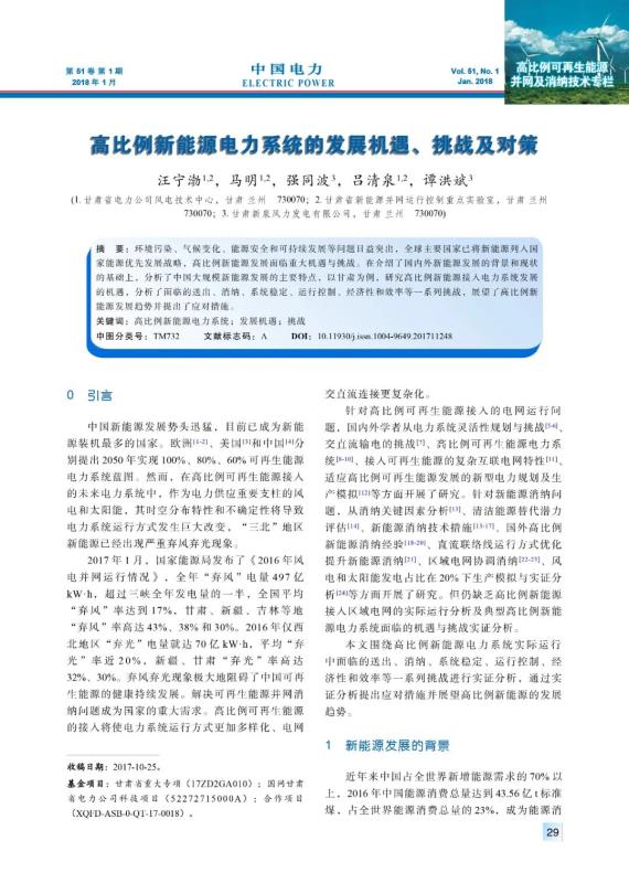 WANG Ningbo, MA Ming, QIANG Tongbo, et al. High-Penetration new energy power system development: challenges, opportunities and countermeasures[J]. Electric Power, 2018, 51(1): 29-35, 50.