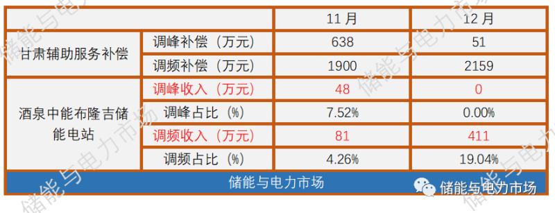 有意思的是,獨立儲能電站,酒泉中能布隆吉儲能電站,已經從11月份開始獲得調峰、調頻補償。