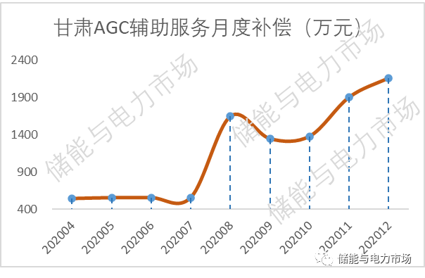 2020年8月進入現貨市場持續(xù)運行后,甘肅的調頻輔助服務的補償額從556萬/月上升至1644萬每月,并持續(xù)保持在1300萬/月以上。2020年12月,取得全年最高的2159萬。