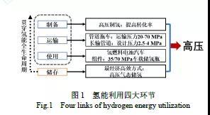 氫氣儲(chǔ)存貫穿于氫氣生產(chǎn)、運(yùn)輸和使用等各個(gè)環(huán)節(jié)(見圖1)。目前主要的氫氣儲(chǔ)存方式有三種:高壓氣態(tài)儲(chǔ)氫、低溫液態(tài)儲(chǔ)氫和固態(tài)儲(chǔ)氫。高壓氣態(tài)儲(chǔ)氫是指通過高壓壓縮方式將氣態(tài)氫儲(chǔ)存于容器中,該方式工藝簡(jiǎn)單且成本低。而低溫液態(tài)儲(chǔ)氫是指通過低溫將氫氣液化并將液態(tài)氫儲(chǔ)存于特定的容器中。液態(tài)氫的體積密度為氣態(tài)氫的845倍,因此液態(tài)儲(chǔ)氫的最大優(yōu)勢(shì)就是儲(chǔ)氫量大,但為了保證-250℃低溫液態(tài)儲(chǔ)氫條件,需要配備極高要求的絕熱和冷卻設(shè)施,因此,液態(tài)儲(chǔ)氫的能耗非常高。有研究表明,每千克液態(tài)氫的液化裝置的功耗可達(dá)10-15kW·h,而高壓氣態(tài)氫在運(yùn)輸過程中每千克氫氣的加壓總功耗僅為2.3 kW·h。固態(tài)儲(chǔ)氫是指通過化學(xué)反應(yīng)或物理吸附將氫氣儲(chǔ)存于特定材料中。常用的儲(chǔ)氫材料包括:金屬合金、碳質(zhì)材料和有機(jī)物等。目前國(guó)內(nèi)外對(duì)于固態(tài)儲(chǔ)氫技術(shù)的研究還不夠成熟,仍處于理論探索階段,面臨的主要難題包括材料制備工藝復(fù)雜、反應(yīng)放氫困難和可逆性差等。因此,與低溫液態(tài)儲(chǔ)氫相比,高壓氣態(tài)儲(chǔ)氫具有能耗低、成本低的優(yōu)勢(shì);與固態(tài)儲(chǔ)氫相比,高壓氣態(tài)儲(chǔ)氫具有技術(shù)成熟、工藝流程簡(jiǎn)單、儲(chǔ)氫量大的優(yōu)點(diǎn)。綜合考慮成本、儲(chǔ)氫密度、工藝等多方面因素,高壓氣態(tài)儲(chǔ)氫是最高效和最經(jīng)濟(jì)的儲(chǔ)氫方法,也是目前主流的儲(chǔ)氫方式。