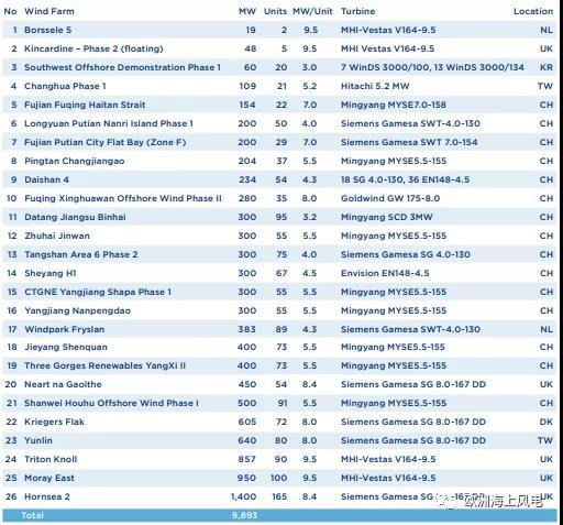 15個新增風場主要來自歐洲和中國,其中最大的兩個風場都在荷蘭投產(chǎn);