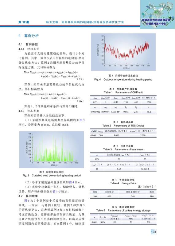 摘要:中國北方地區(qū)存在高比例的熱電聯(lián)產(chǎn)機(jī)組,受冬季采暖負(fù)荷制約,調(diào)節(jié)能力有限,引發(fā)冬季棄風(fēng)問題,增加電儲能和儲熱設(shè)備是提高熱電聯(lián)產(chǎn)機(jī)組調(diào)節(jié)能力的重要手段。研究在電力輔助服務(wù)市場環(huán)境下的熱電聯(lián)產(chǎn)機(jī)組與電儲能、儲熱設(shè)備的協(xié)調(diào)優(yōu)化運(yùn)行方法,分別建立以電儲能設(shè)備和熱電聯(lián)產(chǎn)機(jī)組調(diào)峰效益最大和蓄熱效益最大為目標(biāo),考慮棄風(fēng)最大化消納、系統(tǒng)供熱需求以及熱電聯(lián)產(chǎn)機(jī)組、電儲能和儲熱設(shè)備運(yùn)行約束的分級協(xié)調(diào)優(yōu)化模型。系統(tǒng)仿真測試表明:所提方法能夠協(xié)調(diào)優(yōu)化電儲能和儲熱裝置的運(yùn)行,充分利用儲熱設(shè)備的多日調(diào)節(jié)能力,提高系統(tǒng)在電力市場中的運(yùn)行收益,有效減少棄風(fēng)。研究結(jié)果對解決當(dāng)前電力市場環(huán)境下北方地區(qū)的冬季棄風(fēng)問題具有一定價(jià)值。