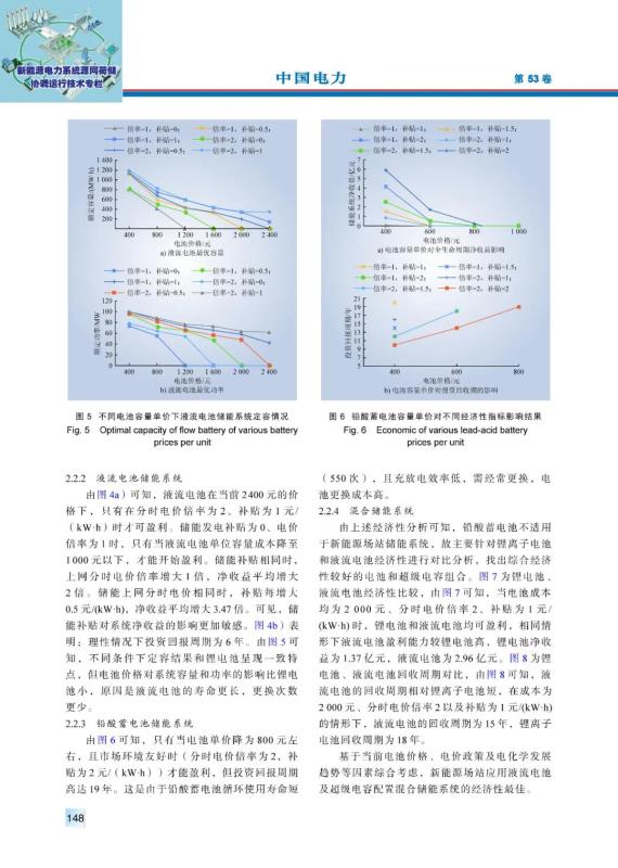 (2)電價政策不改變時,鋰離子電池及液流電池儲能系統(tǒng)在電池價格下降至1000元左右時,全生命周期才有盈利可能;而電池價格不變的情況下,分時電價倍率需達2倍左右、儲能補貼在1元/(kW·h)左右,全生命周期才有盈利可能。