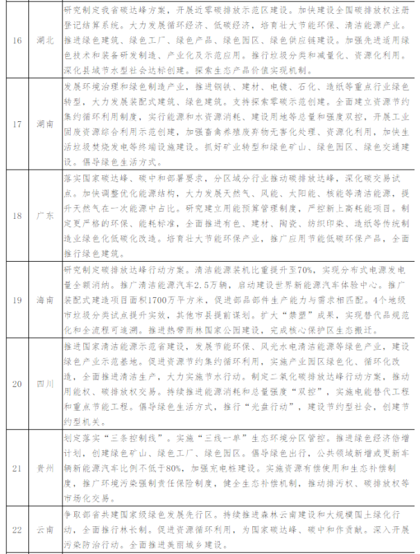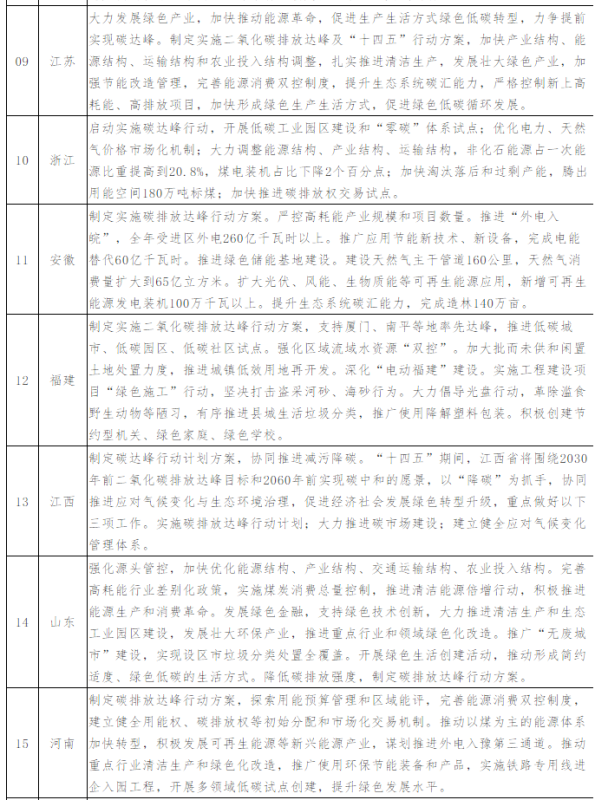 四、重點(diǎn)省市落實(shí)碳達(dá)峰、碳中和的行動方案