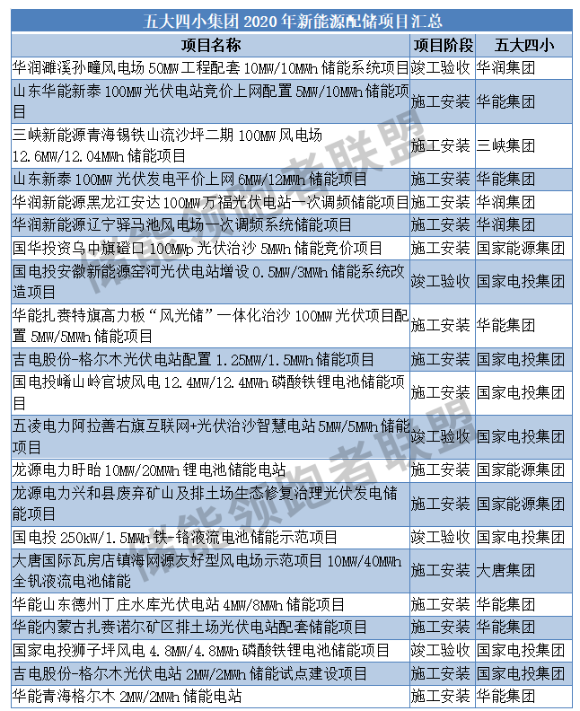 在2020年時(shí),內(nèi)蒙古地區(qū)新能源配儲(chǔ)項(xiàng)目個(gè)數(shù)已名列全國(guó)第一,共有18個(gè),其中包含1個(gè)已竣工驗(yàn)收的項(xiàng)目,即五凌電力阿拉善右旗互聯(lián)網(wǎng)+光伏治沙智慧電站5MW/5MWh儲(chǔ)能項(xiàng)目,10個(gè)正在施工安裝的項(xiàng)目,7個(gè)還處于前期規(guī)劃中的項(xiàng)目。這18個(gè)儲(chǔ)能項(xiàng)目里,有13個(gè)是“五大四小”集團(tuán)投建,其中國(guó)家能源集團(tuán)、華能集團(tuán)、大唐集團(tuán)、國(guó)家電投集團(tuán)分別有4個(gè)、4個(gè)、3個(gè)、2個(gè)。
