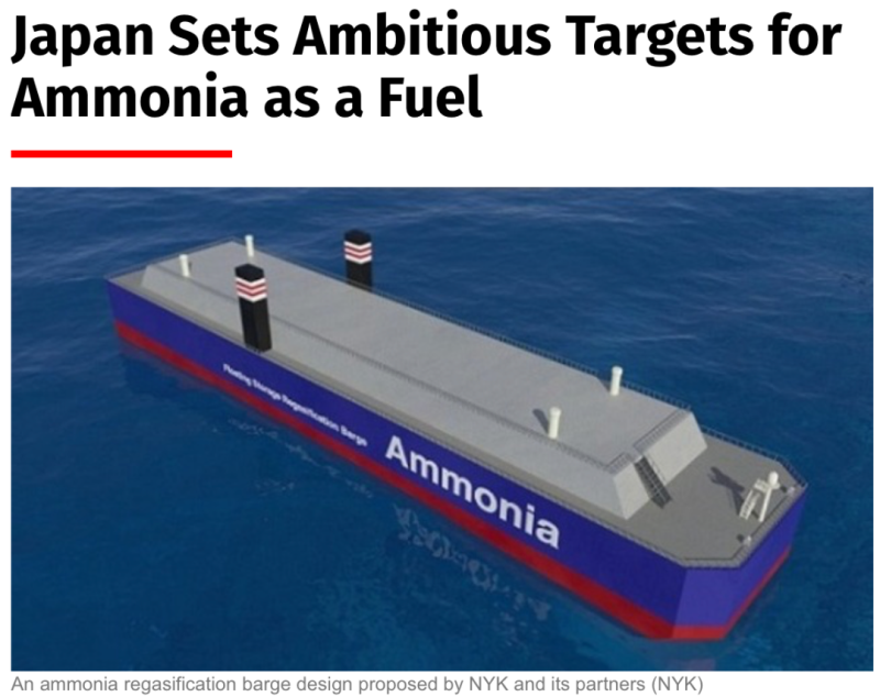 另一種選擇通過碳捕獲生產(chǎn)“藍(lán)色氨”。日本經(jīng)濟(jì)產(chǎn)業(yè)省和阿布扎比國家石油公司(ADNOC)簽署了一份諒解備忘錄,就如何將天然氣用于藍(lán)氨生產(chǎn)進(jìn)行示范,并共同努力擴(kuò)大市場(chǎng)。