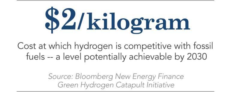每公斤2美元,是讓氫燃料能夠與化石燃料競爭的價格,這有可能在2030年實現(xiàn)