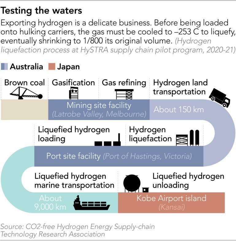 在川崎重工與澳大利亞的項目中,氫是由廉價的褐煤生產(chǎn)的。通過把煤轉(zhuǎn)化成氫,它就變成了一種可運輸?shù)馁Y源。澳大利亞維多利亞州目前正試圖開發(fā)一個商業(yè)規(guī)模的碳捕獲和存儲網(wǎng)絡(luò)。