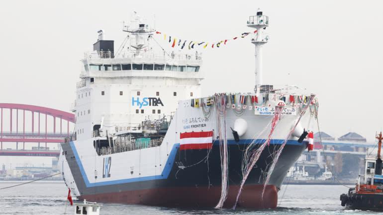 與此同時,日本對氫的信心最令人印象深刻的例子發(fā)生在日本西部的港口城市神戶,世界上第一艘氫運輸船——116米高的Suiso Frontier——停泊在那里。