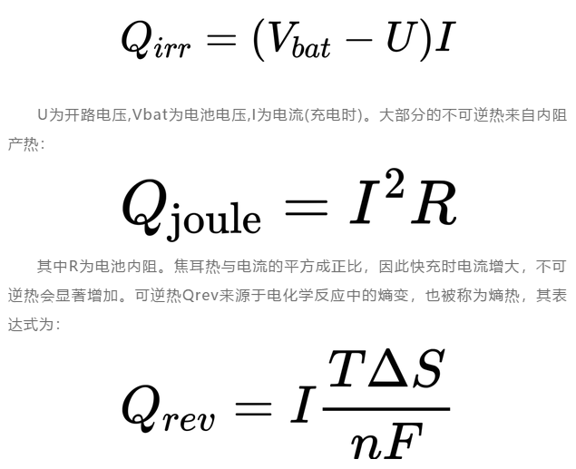 鋰離子電池的產(chǎn)熱可分為可逆和不可逆過程。其中不可產(chǎn)熱Qirr的表達式如下:
