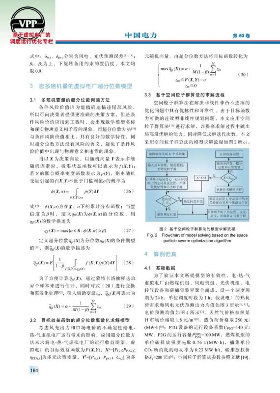 虛擬電廠總體降低了不確定因素的影響,但若不考慮其內部的隨機性,則會使虛擬電廠在參與電力、天然氣市場過程中,因其調度方案的保守性,難以獲得最高的經濟效益。為了充分挖掘虛擬電廠的經濟效益,提出了一種氣電市場下計及電價和風光不確定性的電-熱-氣虛擬電廠隨機優(yōu)化調度模型。模型目標函數為虛擬電廠總效益,即售電售熱售氣收益與電轉氣成本、碳捕集成本、碳排放權成本和燃料成本之差。引入超分位數方法將含多隨機變量的虛擬電廠總效益最優(yōu)模型轉化為其超分位數隨機優(yōu)化模型,為了便于計算進而處理為其離散化計算模型,并利用空間粒子群算法進行求解。算例分析表明:虛擬電廠通過優(yōu)化售電和售氣方案來獲得最優(yōu)效益,在參與氣電市場過程中考慮多種隨機變量,使得虛擬電廠規(guī)避風險后有更多的機會獲得更高的經濟效益。