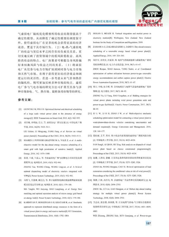 彭院院, 周任軍, 曾子琪, 等.參與氣電市場的虛擬電廠內部優(yōu)化隨機模型[J]. 中國電力, 2020, 53(9): 181-188.