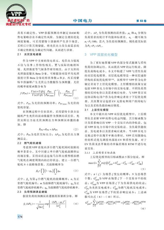 虛擬電廠作為能源互聯(lián)網(wǎng)中的重要組成部分,在聚合分布式能源和用戶側(cè)資源、完善電力市場交易體制等方面發(fā)揮著重要作用。由于虛擬電廠中新能源裝機容量較大,其出力具有隨機性,導致其在電力市場中需要承擔懲罰費用。提出以虛擬電廠聚合分布式能源為多類負荷提供電能服務(wù),首先通過蒙特卡洛抽樣建立了分布式電源出力不確定性模型。隨后在考慮需求響應(yīng)的前提下,建立了虛擬電廠與用戶側(cè)的雙層優(yōu)化模型,以虛擬電廠凈收益為上層目標函數(shù),綜合考慮市場交易收益、售電收益、發(fā)電成本等因素;以用戶側(cè)購電成本為下層目標函數(shù),對用戶的購電行為、響應(yīng)行為進行優(yōu)化。最后,通過算例驗證了該模型能夠減少虛擬電廠在電力市場中的投標偏差,提高運營收益,并有效降低負荷的購電成本。