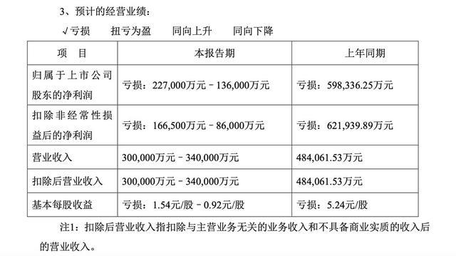 早些時(shí)間,該公司發(fā)布2020年度業(yè)績預(yù)告顯示,在2020年1月1日至2020年12月31日時(shí)期內(nèi),公司營業(yè)收入300,000萬元–340,000萬元,歸屬于上市公司股東的凈利潤虧損227,000萬元–136,000萬元,基本每股收益虧損1.54元/股–0.92元/股,營業(yè)收入、歸屬于上市公司股東的凈利潤與基本每股收益虧損均較2019年有所下降。