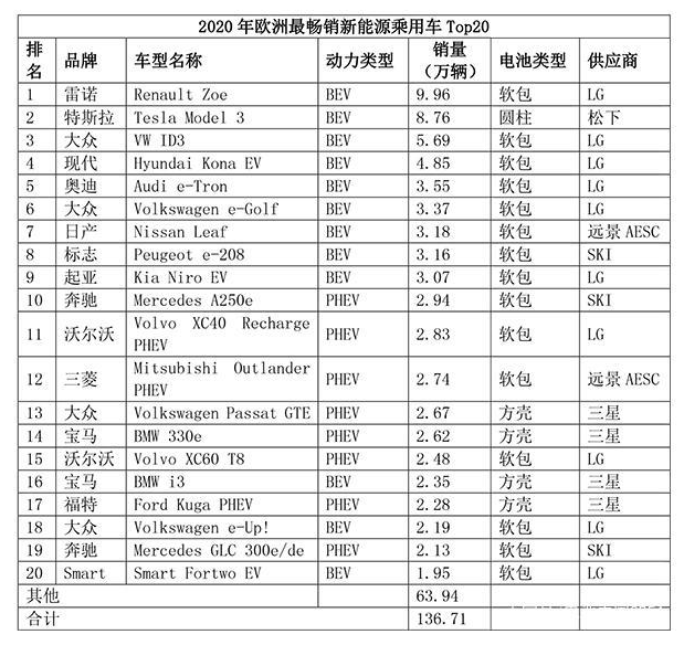 眾所周知,在中國市場裝機(jī)量最大的動力電池為方形電池;與國內(nèi)市場形成鮮明對比的是,歐洲市場對于軟包電池則更加青睞。數(shù)據(jù)顯示,2020年歐洲最暢銷的20款新能源乘用車中,有15款搭載軟包動力電池,市場占比高達(dá)75%,是絕對的市場主宰。