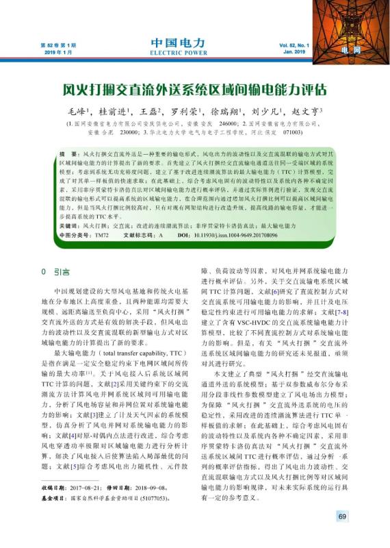 毛峰, 桂前進(jìn), 王磊, 等. 風(fēng)火打捆交直流外送系統(tǒng)區(qū)域間輸電能力評估[J]. 中國電力, 2019, 52(1): 69-75.