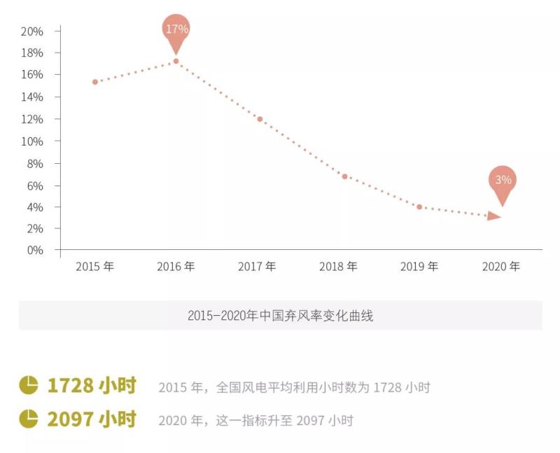 “十三五”時期,得益于并網(wǎng)消納形勢的持續(xù)好轉(zhuǎn),全國風電平均利用小時數(shù)不斷提高,棄風率持續(xù)下降。