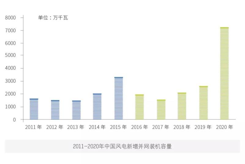 “十三五”收官之際,我國風電發(fā)展迎來高潮。2020年新增風電并網(wǎng)裝機容量7167 萬千瓦,由此表明經(jīng)多年培育成熟的產(chǎn)業(yè)鏈,足以為落實我國的“30· 60 目標”提供堅實支撐。