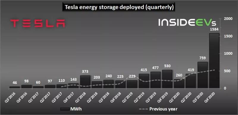 事實上,即使沒有“得州大停電”的推波助瀾,特斯拉儲能產(chǎn)品也已呈現(xiàn)出爆發(fā)式增長。