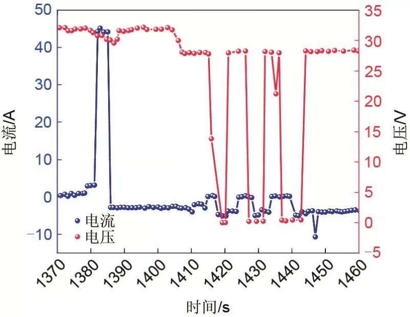 圖12 電池組事故過程中電流、電壓