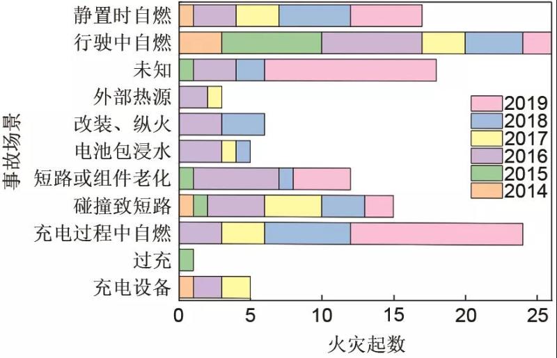 圖3 2011—2019年國(guó)內(nèi)外電動(dòng)汽車事故場(chǎng)景統(tǒng)計(jì)