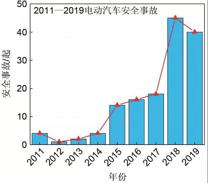 圖2 2011—2019年國(guó)內(nèi)外電動(dòng)汽車起火事故