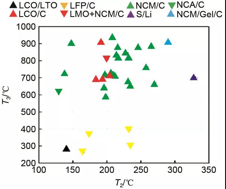 圖1 不同體系鋰離子電池?zé)崾Э靥卣鳒囟?