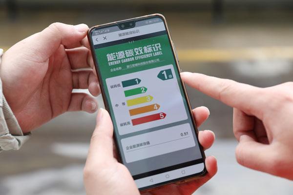 圖說:通過浙里辦APP中的“企業(yè)碼”可查詢企業(yè)自身“能源碳效標(biāo)識(shí)”。湯天承 攝