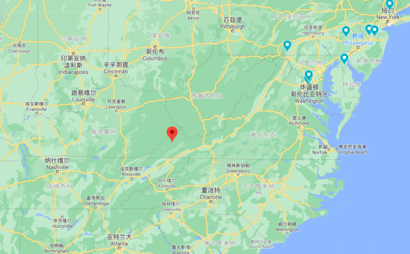 五個(gè)縣位于弗吉尼亞州西部,該地區(qū)西南距離亞特蘭大約400公里。東北距華盛頓600公里。