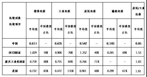 從以上幾組數(shù)據(jù)對比可以看出,與OECD國家和新興工業(yè)化國家相比,我國電價明顯處于較低水平;與美國相比,我國電價總體水平也低于美國。