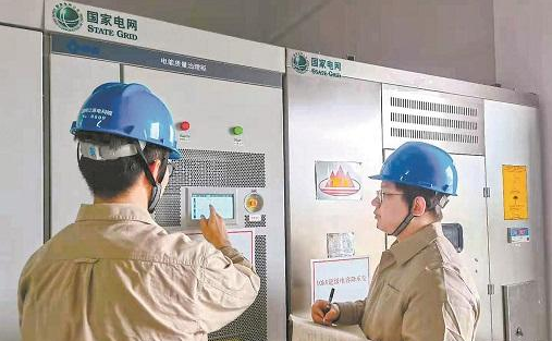 國(guó)網(wǎng)江蘇電力專業(yè)人員記錄分析超級(jí)電容微儲(chǔ)能裝置數(shù)據(jù)。