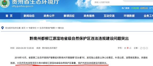 《中國經(jīng)營報》記者注意到,該風電場項目在2020年4月曾被貴州省生態(tài)環(huán)境廳“點名”,被指與貴州都柳江源濕地省級自然保護區(qū)重疊,同時相關審批手續(xù)涉及違法辦理。
