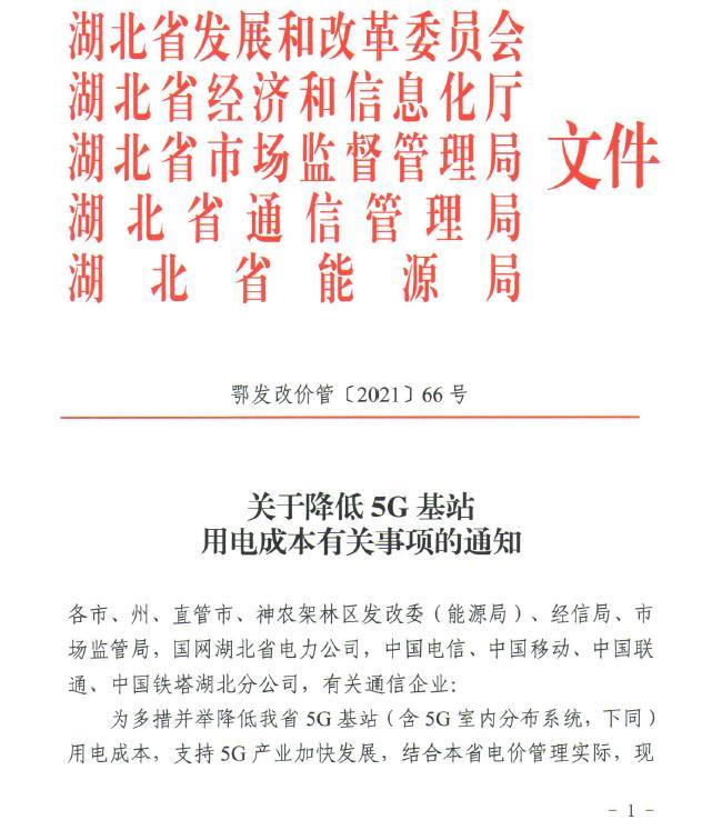 3月10日,湖北省發(fā)改委、經(jīng)信廳、市場監(jiān)督局、通信管理局以及能源局等五部門聯(lián)合印發(fā)關(guān)于降低5G基站用電成本有關(guān)事項的通知,多措并舉降低湖北全省5G用電成本,支持5G產(chǎn)業(yè)加快發(fā)展。3月10日,湖北省發(fā)改委、經(jīng)信廳、市場監(jiān)督局、通信管理局以及能源局等五部門聯(lián)合印發(fā)關(guān)于降低5G基站用電成本有關(guān)事項的通知,多措并舉降低湖北全省5G用電成本,支持5G產(chǎn)業(yè)加快發(fā)展。